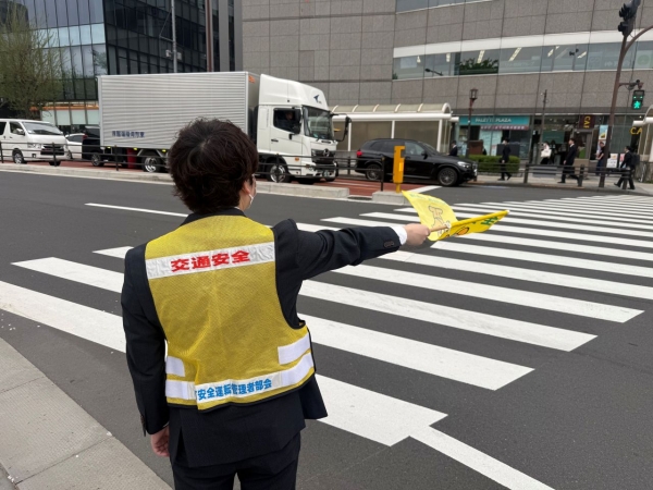 市ヶ谷駅前の交差点にて旗持ち誘導を行いました。