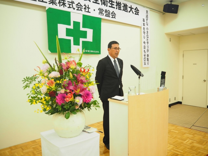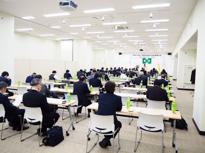 2021年11月18日 3蜜を避け、パーテーション設置などの感染対策を行い 秋季労働安全衛生推進大会を開催いたしました。