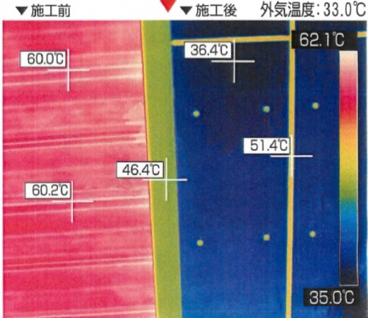 折板屋根で室内温度を下げたい場合、一般的に行われている工法としては、遮熱塗料を使われるケースが有りますが、熱中症対策としては効果が期待できないとされています。熱中症の原因とされる輻射熱を止める為には、折板下部に断熱材と熱を反射させるアルミ箔が有効とされています。