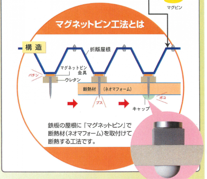 鉄骨造屋根断熱システム工法「マグネットピン工法」
