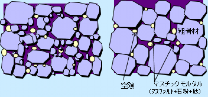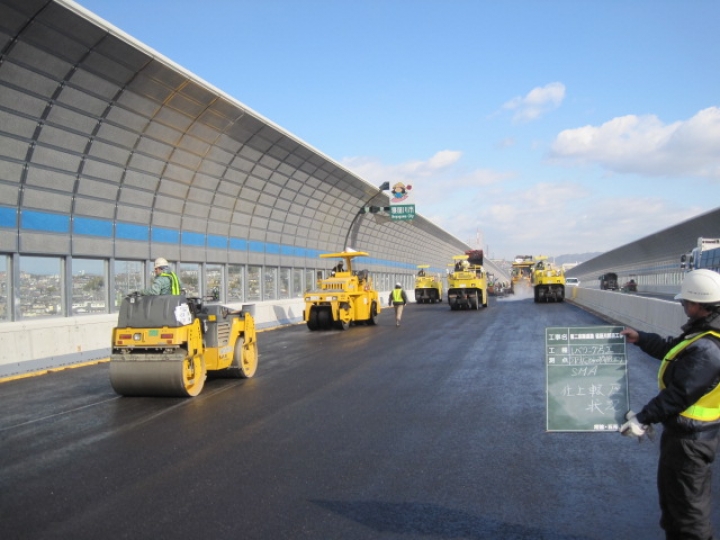 砕石マスチック舗装(SMA)は、アスファルトモルタルの充填効果と粗骨材の噛み合わせ効果および繊維質補強材、ポリマー改質アスファルトの使用により、耐流動性、耐摩耗性、水密性、すべり抵抗性、疲労破壊抵抗性を有し、これらの性能を生かして、重交通道路の表層や橋面舗装の基層や表層、リフレクションクラックの抑制層として用いられます。