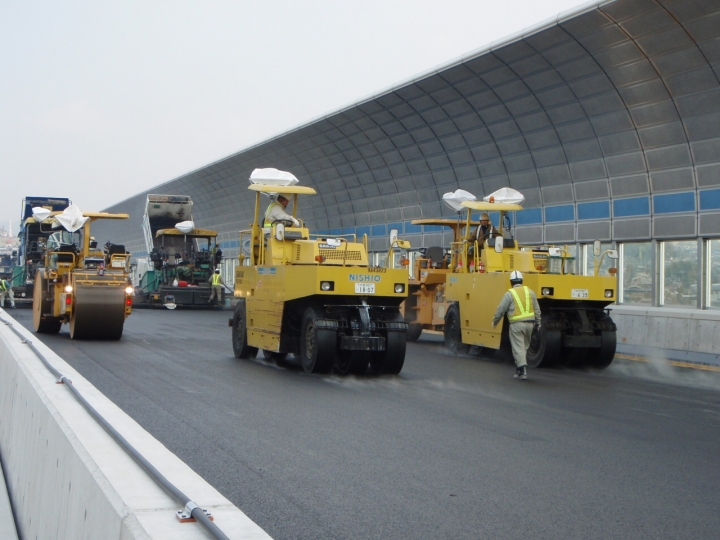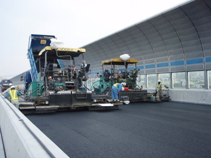 3.繊維質補強材を用いた低空隙(2~3%)混合物を使用しているため、たわみ追従性や水密性に優れています。