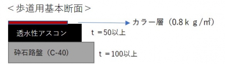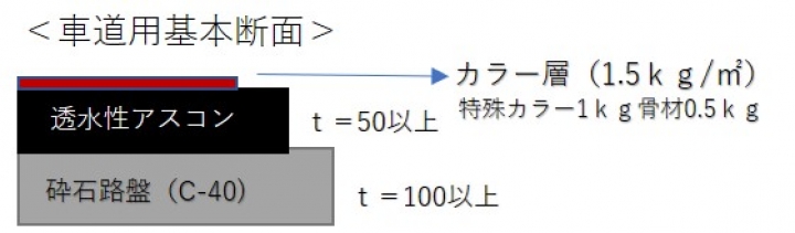 歩道用はアクリルエマルジョン系塗材を使用し、車道用は強度に優れた特殊樹脂を使用してます。