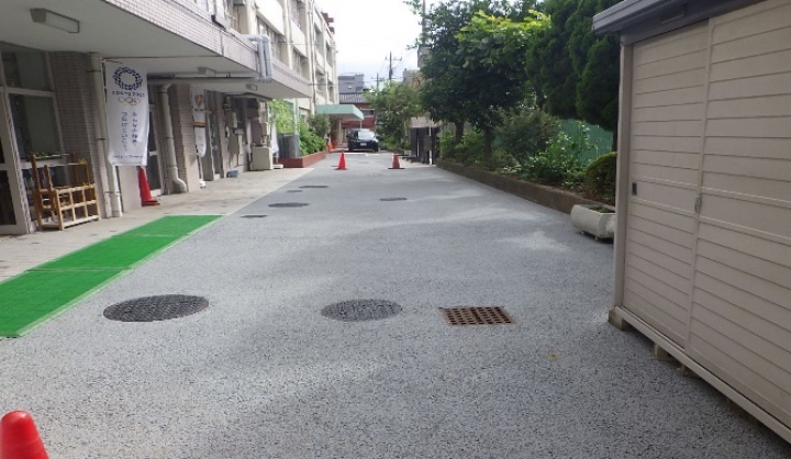 ・小規模工事に対応出来、メンテナンスが容易です。 ・他の工法と比較して安価です。 ・色彩が豊富です。特注色にも対応可能です。 ・透水性の為、水溜りが出来ません。 ・舗装の粒取れ防止になります。