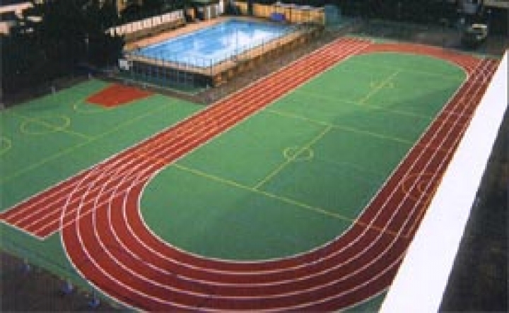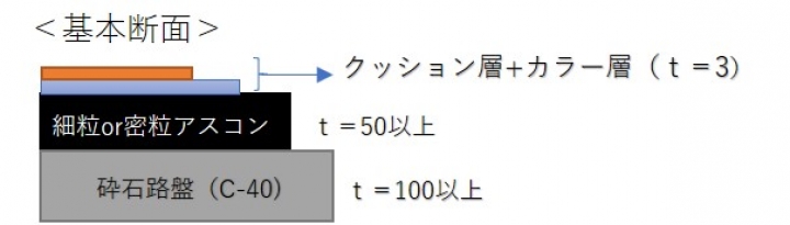 中間層にクッション層を設け、表層にアクリル系塗材を用いたセミハードタイプ(非透水)