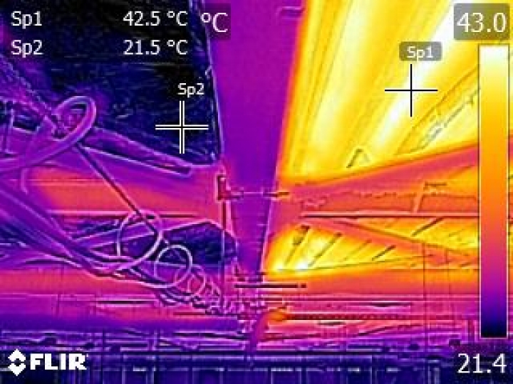 金属製屋根材が太陽光を受け高温になると、肉眼では視認できない放射熱(輻射熱)となって屋根下へ降り注ぎます。
